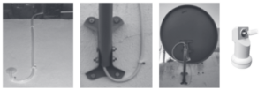 4° – Planeje a passagem dos cabos de forma a evitar poluição visual no local, sempre utilizando os rodapés ou cantos entre paredes e teto utilizando fixa cabos, passar dentro do mastro da antena, proteger a conexão no LNBF com a borracha que acompanha, utilize fixa cabo, faça o J para evitar infiltrações.